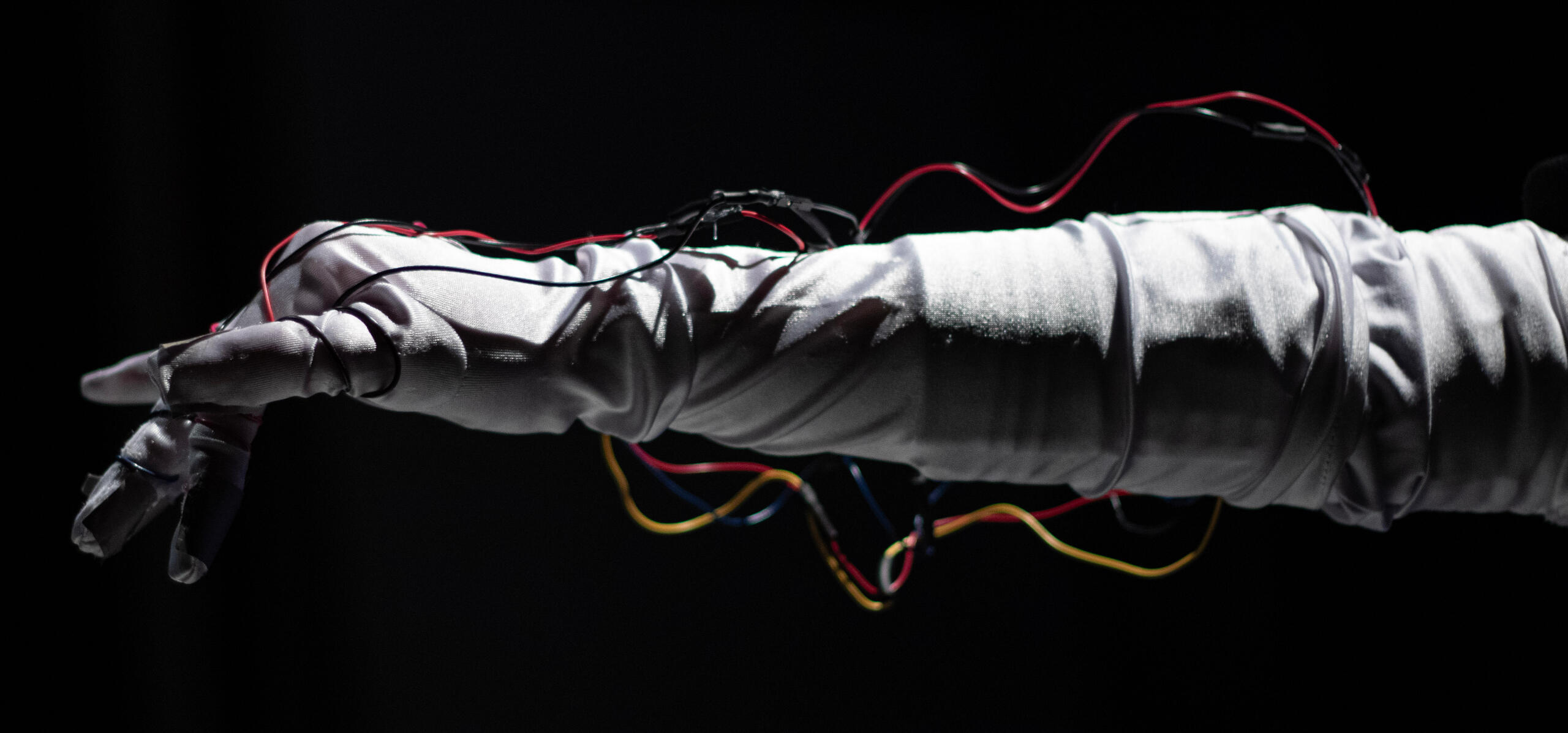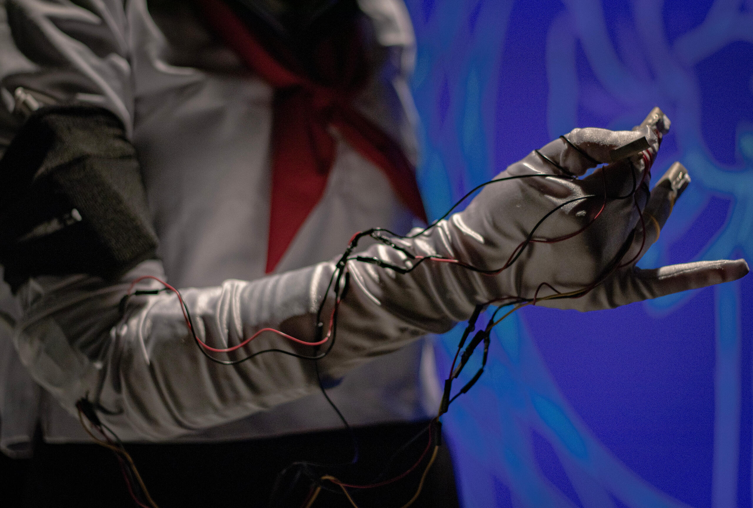 Wearable interface for live, intuitive screen control for performance. Created with Adafruit ESP32 Feather, C++, Shiftr, p5.js