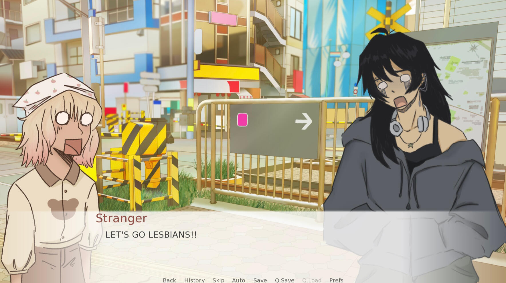 Memories with Her is a visual novel about a queer woman, Mei, reconciling with the death of her long-term girlfriend through revisiting locations significant to their relationship. This visual novel was created in a small team with the prompt of using contemporary artwork as inspiration. We chose Queering the Map and Untitled (Portrait of Ross in LA).