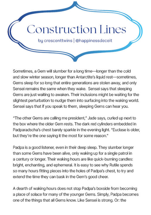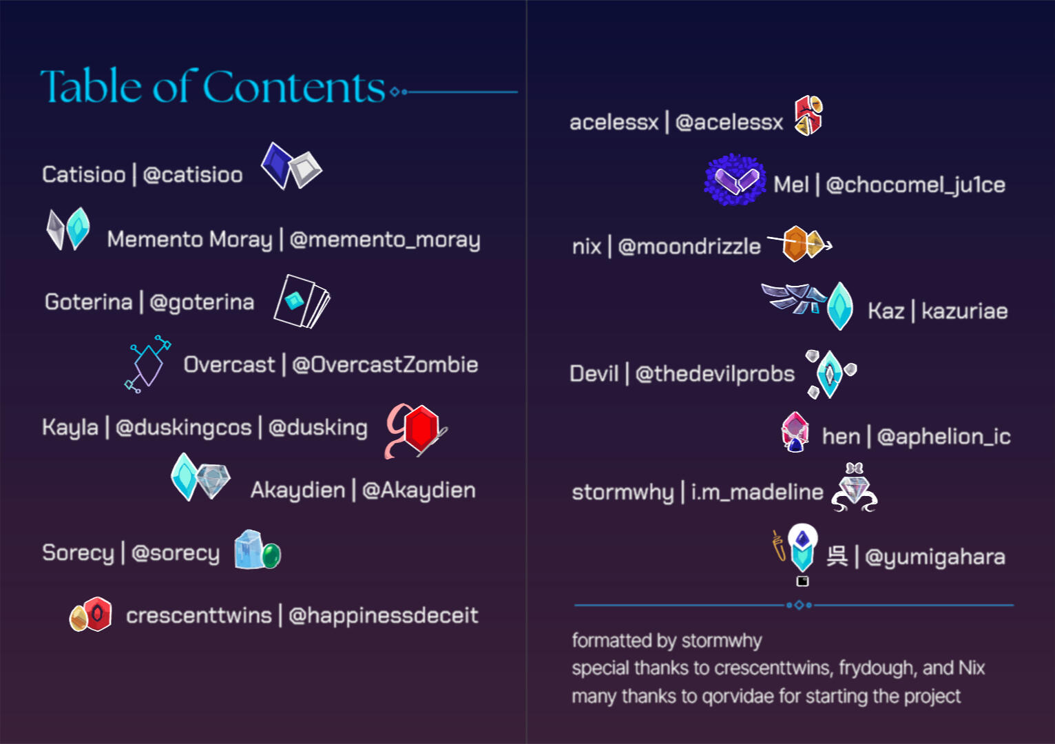 Coniunctio is a Houseki no Kuni fanzine. I was chosen as a page illustrator, and later put the zine together as the mods had abandoned the project.